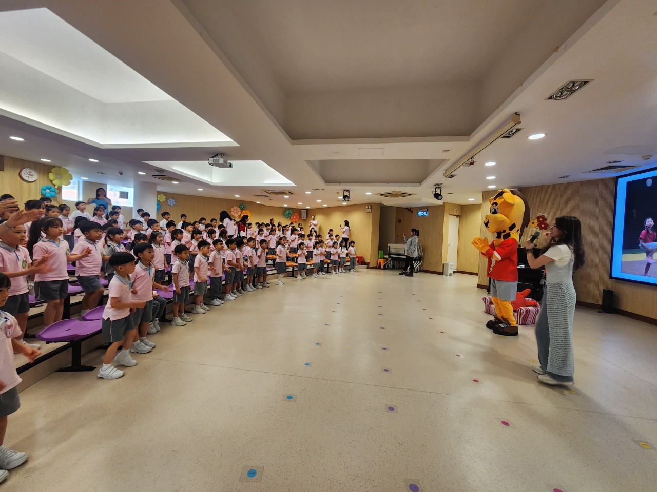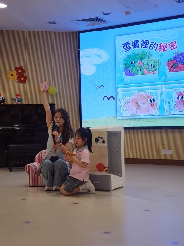 應邀到濠江中學附屬英才學校進行推廣活動 社會工作局健康生活教育導師於4月13日應邀到濠江中學附屬英才學校,舉辦《雪櫃裡的秘密》繪本分享會,向學生推廣健康生活理念。導師透過互動活動介紹食物營養與均衡飲食,並帶領共讀繪本,啟發學生認識健康飲食及舒壓方法。學生更參與角色扮演,將所學知識付諸實踐。課程吉祥物「哈樂」壓軸登場與師生共舞,現場氣氛熱烈。活動吸引約180名師生參與。結束後,學生獲贈精美繪本,鼓勵與家長共讀,增進親子交流,共同培養健康生活習慣。